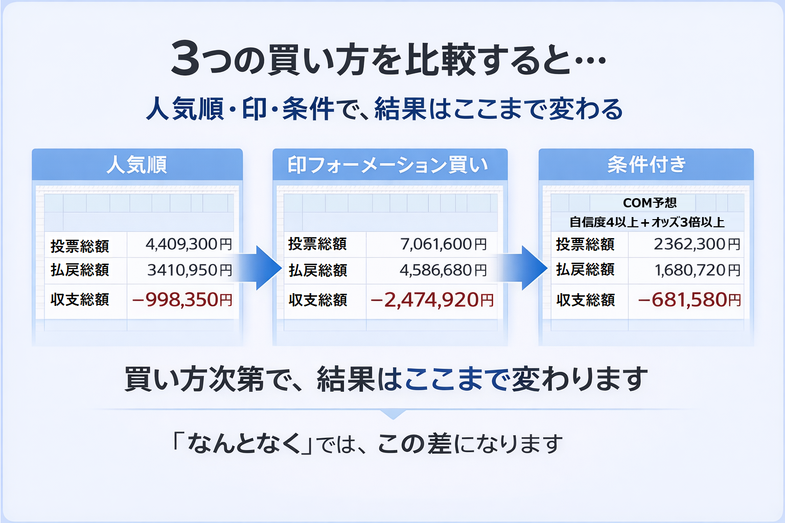 - 人気順で買うのと、◎◯△✕の印で買うのでは何が違うのか?