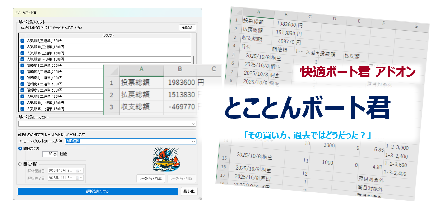 ※ とことんボート君は単体では投票しません(解析専用)。実運用は快適ボート君と併用してください。